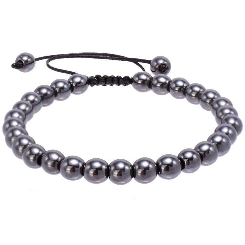 Bratara cu pietre hematit 6 mm pe snur textil - Podoabele Mele