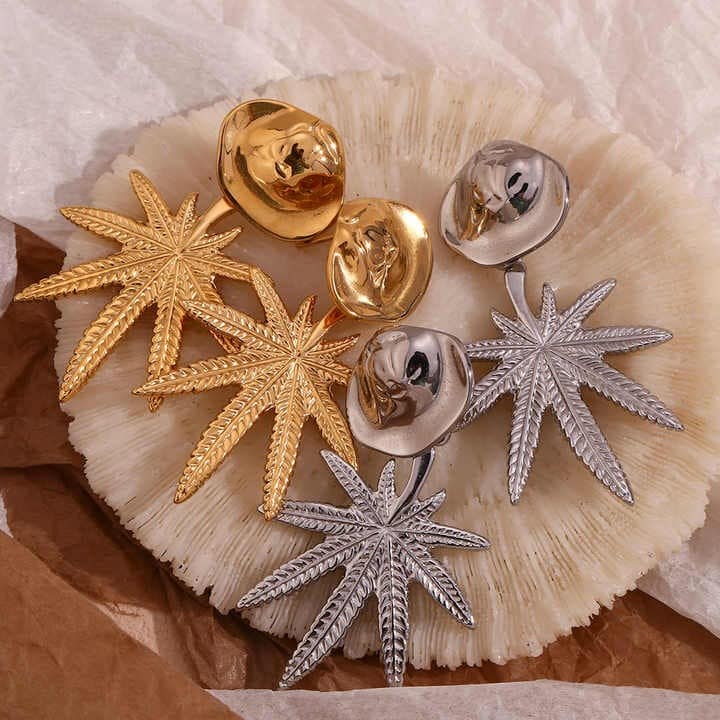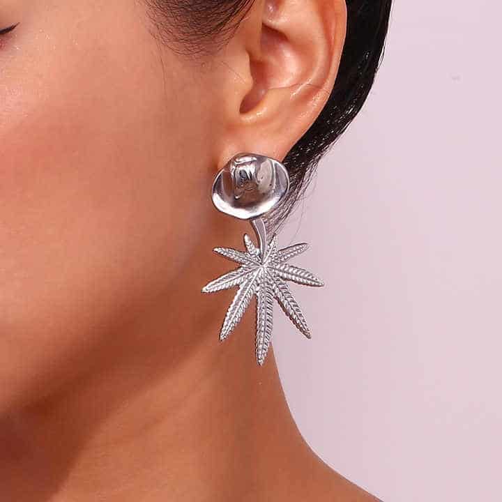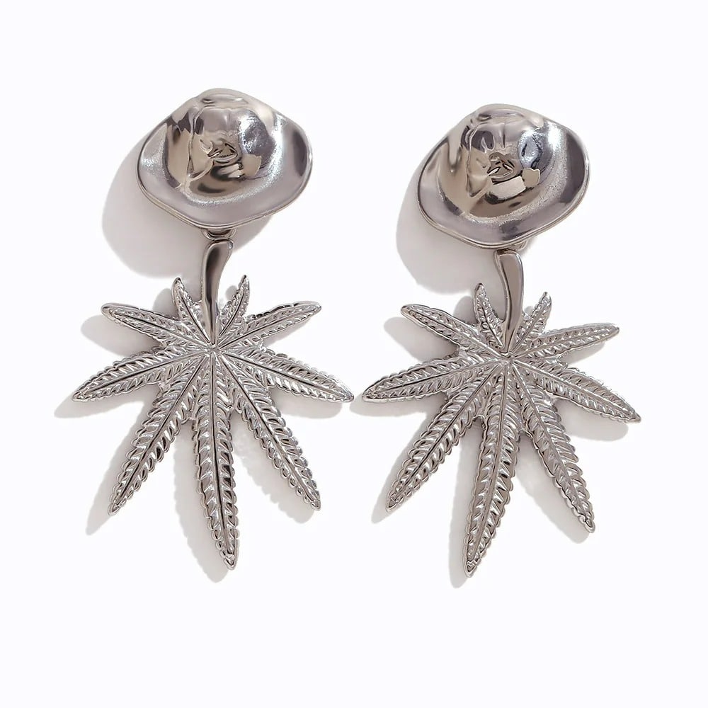 Cercei inox impunatori cu frunza 5,6 x 3,6 cm